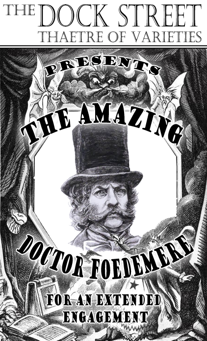 A ticket and telegram arrived today. The ticket was for a performance by The Amazing Doctor Foedemere at Dock Street. The telegram contained a stipend of £100 (I gasped at the sum) for ‘services rendered’ and as an ongoing agreement to continue those same services.